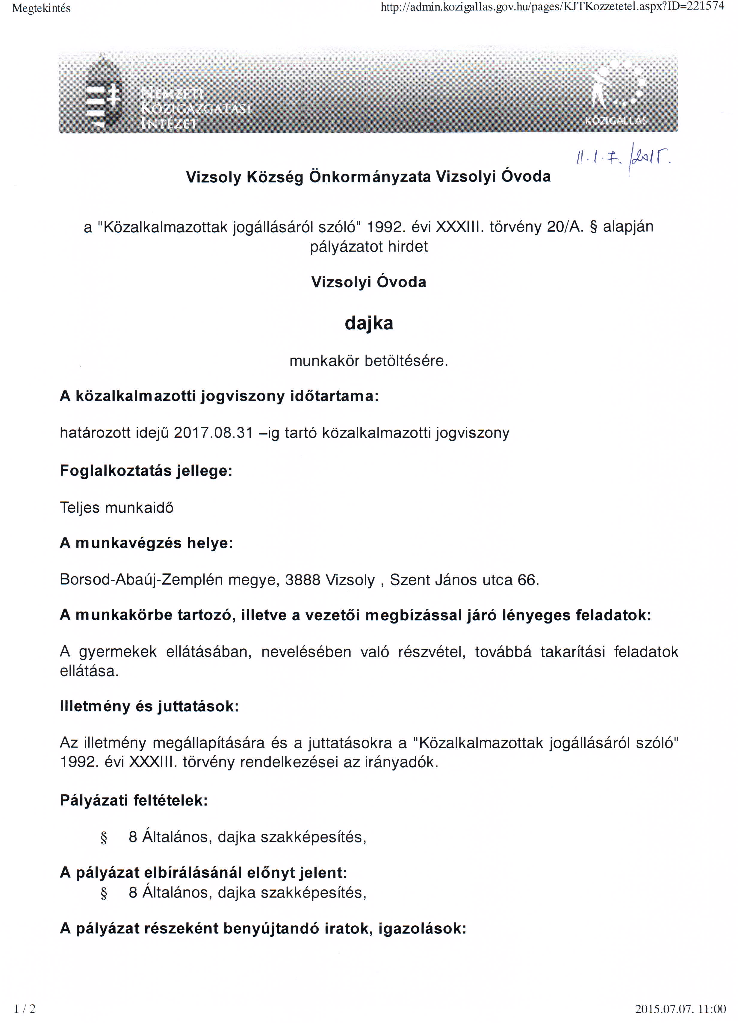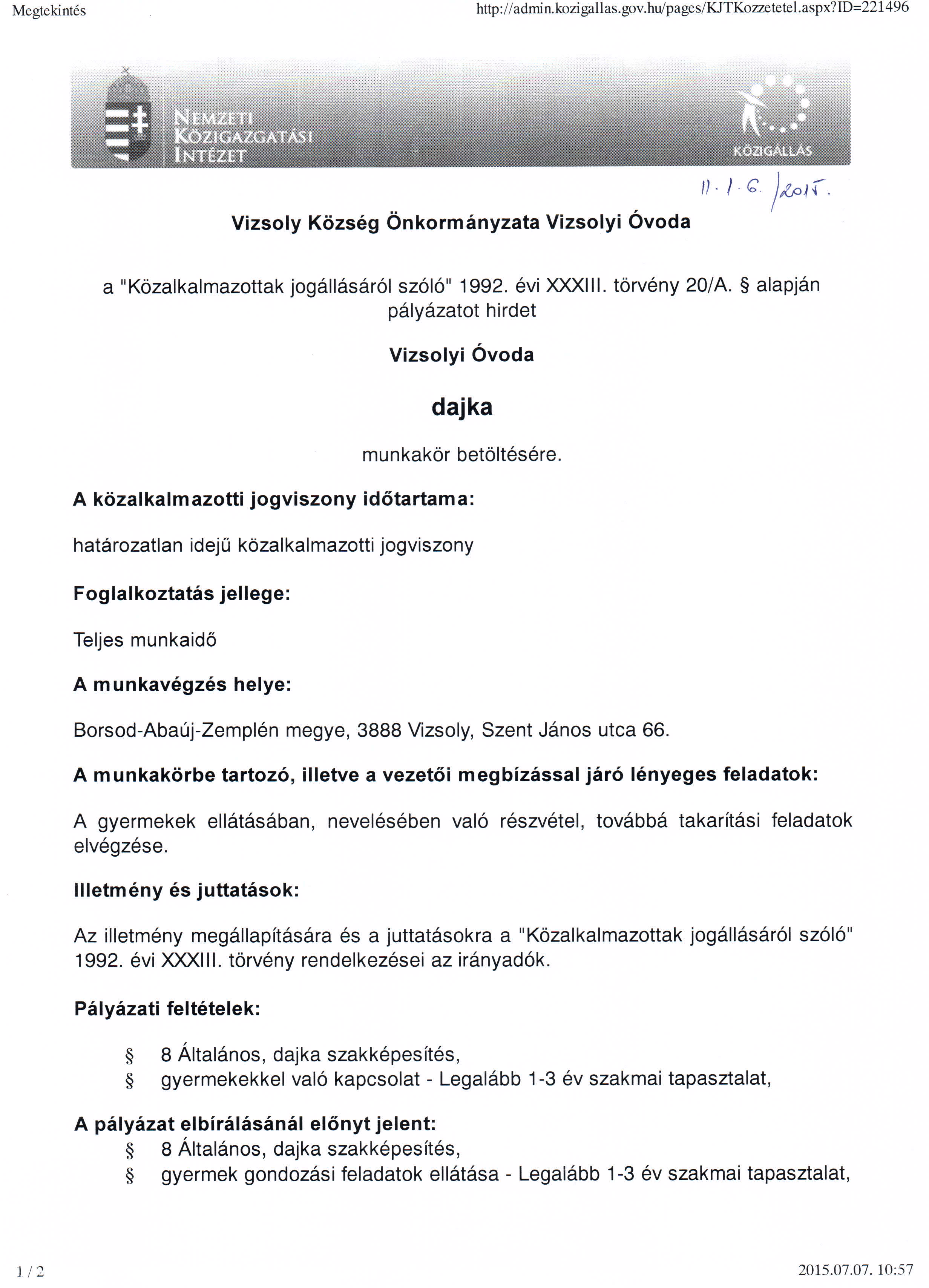 vizsolyi Rákóczi Zsigmond Általános Iskola és Napközi Otthonos